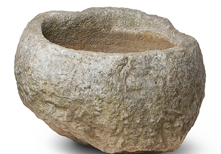 Vasos de pedra são super porosos, o que pede um vaso de plástico no lado interno, para conter a planta. Esses vasos podem ser utilizado tanto em ambientes internos quanto externos. São pesados e estão disponíveis em dimensões e formatos limitados.