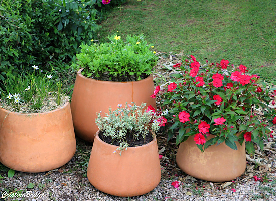 Para quem não gosta da aparência envelhecida do vaso, uma dica é pintar com tinta impermeabilizante a parte interna para evitar que fiquem com manchas brancas na parte externa.