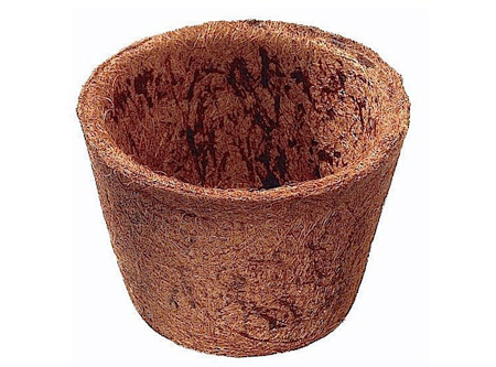 Vaso de fibra de coco é um produto ecológico, de excelente capacidade de reter umidade para as raízes. A desvantagem é que com o tempo perdem a forma, escurecem e possuem tamanho limitado.