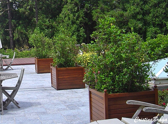 Os vasos de madeira são Leves e versáteis, se integram no ambiente natural do jardim, tanto para ambientes internos quanto externo, porém são muito quentes.