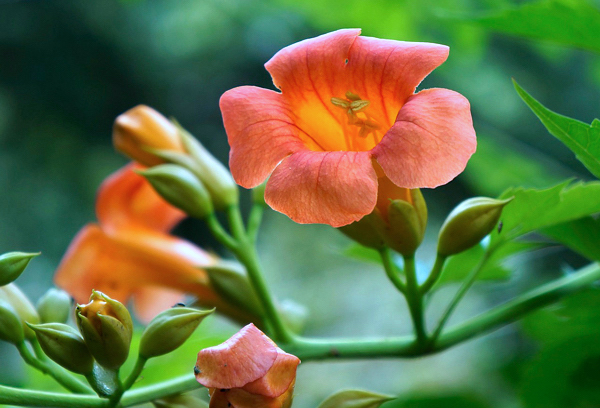 Trombeta Chinesa – Campsis grandiflora é uma trepadeira sarmentosa, pertence à família Bignoniaceae, nativa da Ásia, perene, semi-lenhosa, vigorosa, com de ate 9 metros de altura e muito ornamental.