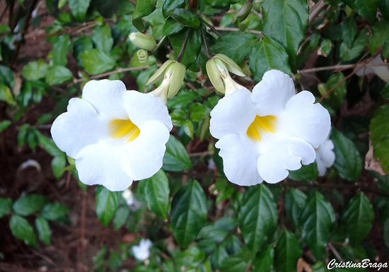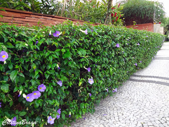 A Tumbérgia arbustiva pode receber poda drástica (não podar mais que 1/3 da folhagem), o arbusto rejuvenesce rapidamente, mas ficará vários meses sem florescer.