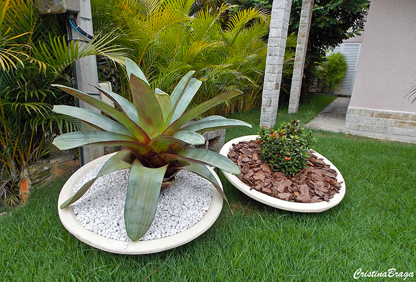 Plantas em vasos tem a vantagem de serem cultivadas acima do nível do solo, o que lhes da maior importância e impacto visual.