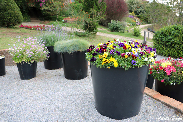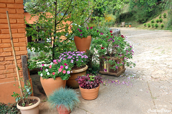 A vantagem dos vasos no jardim, é que pode-se ter plantas para todas as estações do ano, mudando sempre o visual do jardim.