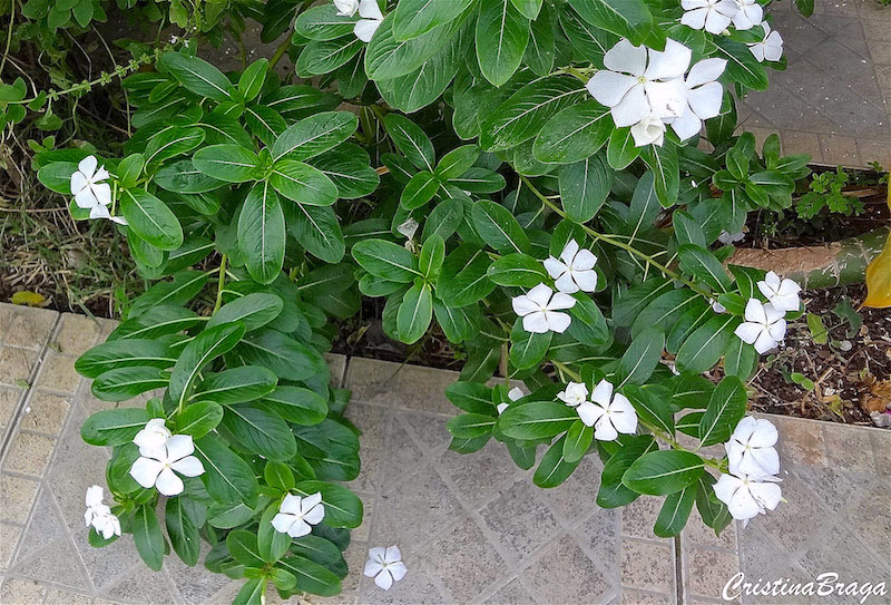 Em climas frios, a vinca desenvolve um caule lenhoso, podendo crescer até um metro de altura.