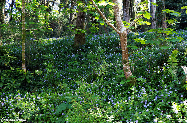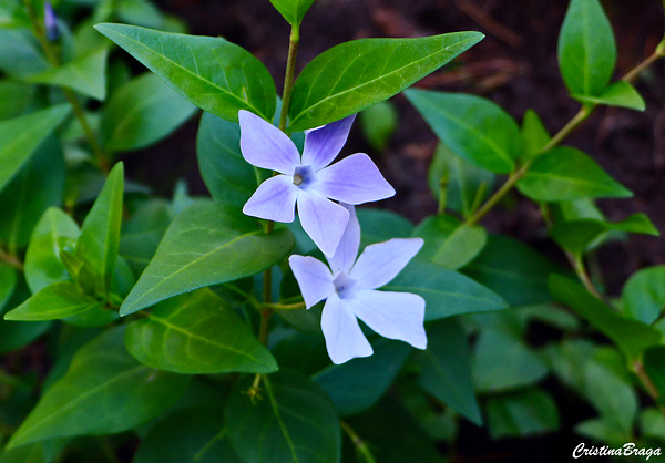 Vinca minor é uma herbácea, pertence à família Apocynaceae, nativa Sul da Europa e Ásia Menor, perene, de crescimento rápido, com ramos longos e finos, com 15-25 cm de altura e de folhagem ornamental.