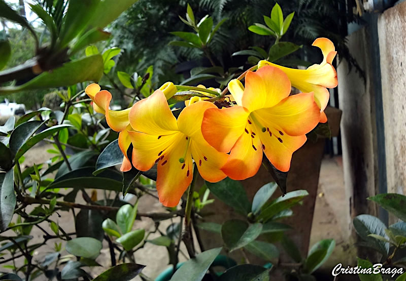 Inflorescências terminais, com flores tubulares, compostas por cinco pétalas e estames bem aparentes. Cada flor dura cerca de 20 dias e são vivamente coloridas, variando de branco, creme, amarelo, laranja, salmão, rosa, vermelho escuro, a quase marrom. Surgem quase o ano todo, com mais intensidade na primavera e atraem beija flores.