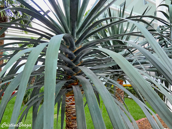 Tronco raramente ramificado, mas nas plantas antigas, pode desenvolver várias hastes, que surgem da base e cada uma tem sua própria roseta de folhas.