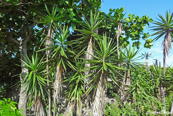 Tronco ereto, de até 13 cm de diâmetro. A planta tem um hábito aberto e arejado. A Yucca aloifolia produz novos brotos, ou ramos, perto da base do tronco, formando uma touceira.