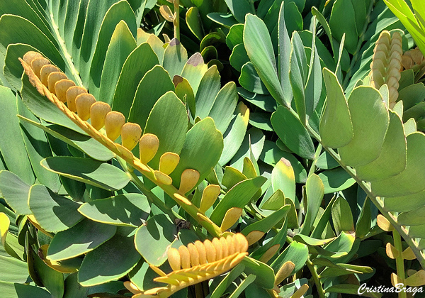Cicas são da época dos dinossauros, são verdadeiros fosséis vivos. A Zamia é uma das Cicadáceas mais cultivada no mundo.